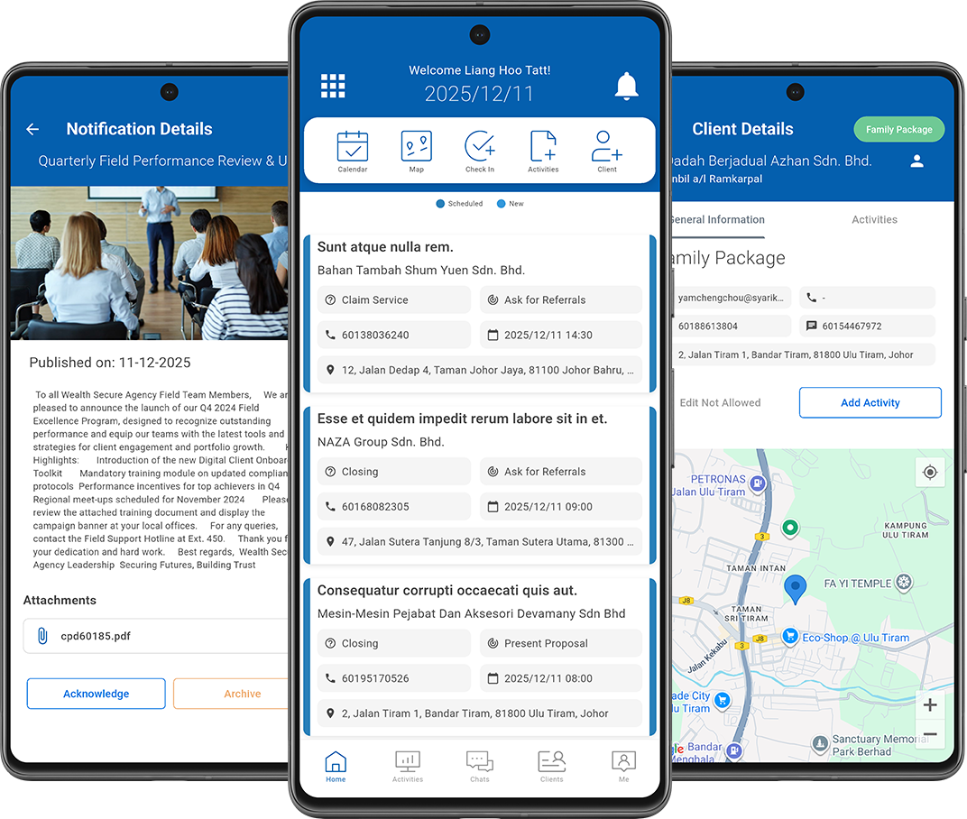 Everything you need to know about your clients, right in your pocket. From field visits to client history — access, update, and manage client data on the go.
